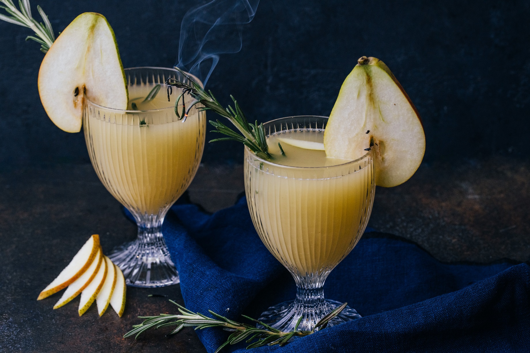 Holunderblütensirup, Wasser und Birnensaft in einem Topf zum Kochen bringen und mit Zitronensaft abschmecken (Alternativ: Mautner Markhof Holunderblütensirup 0 % Zucker). Punsch mit Birnenscheiben sowie Rosmarin dekorieren und auf 2 Gläser verteilen.